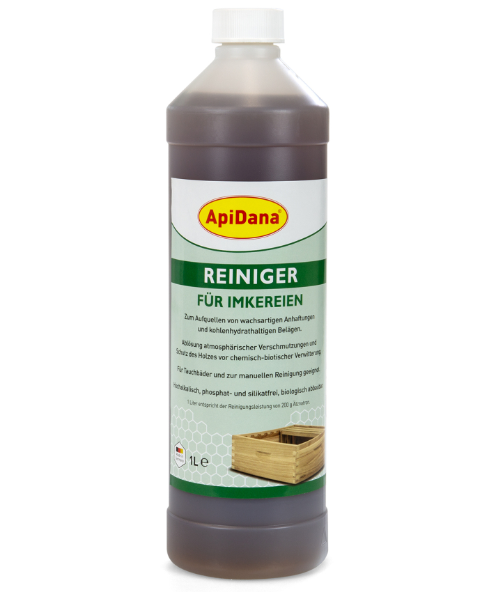 Hochwirksamer Reiniger für Bienenkästen und die gesamte Imkerei. Für die Entfernung von Propolis, Wachs und anderen Verunreinigungen, sowie zur Ablösung atmosphärischer Verschmutzungen Flasche mit 1 Liter