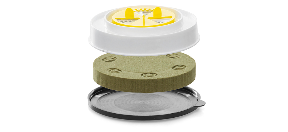 mit Speicherblock und Drehscheibe zum Regulieren der Verdunstungsmenge Ø 12 cm, Höhe 3,5 cm