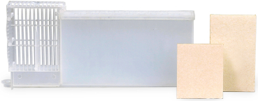aus Kunststoff, mit abnehmbaren Schutzkörbchen und einem Fassungsvermögen von 200 ml. Die Lieferung erfolgt mit zwei unterschiedlich langen Dochten von 60 und 82 mm