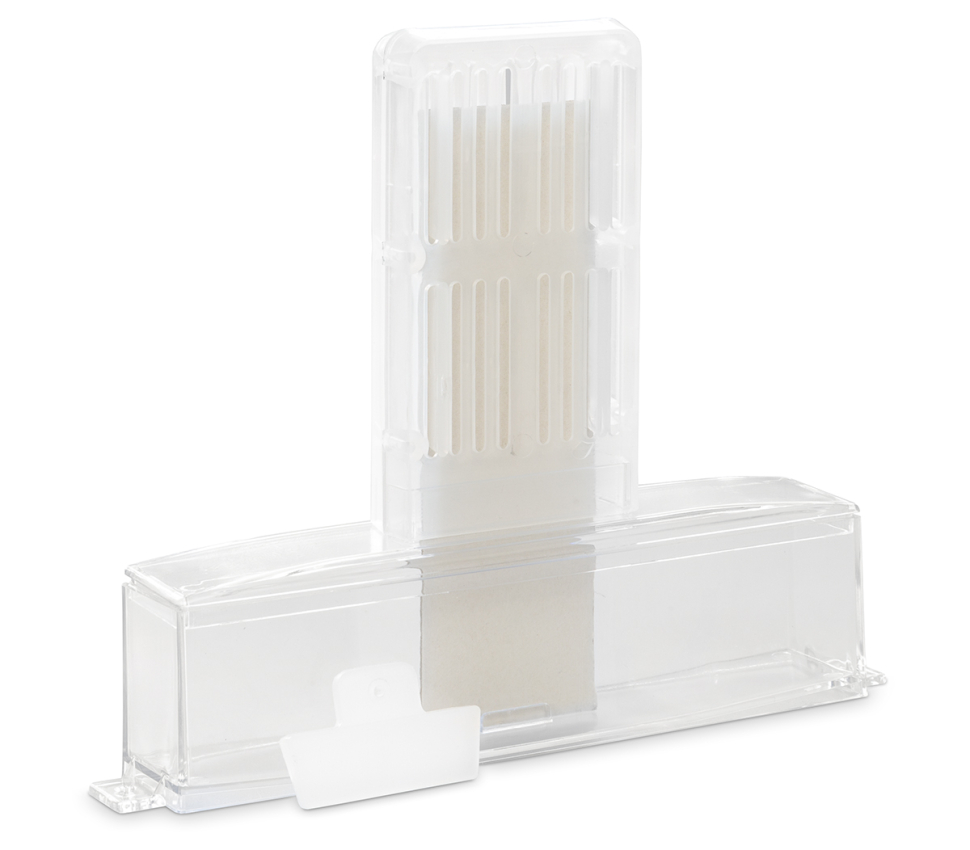 aus Kunststoff zur Befestigung in einem Rähmchen. Bestehend aus dem Grundbehälter mit einem Fassungsvermögen von 250 ml, abnehmbarem Deckel und Schutzkörbchen, Verschlussstopfen und zwei unterschiedlich langen Dochten von 110 und 160 mm. Länge: ca. 22 cm, Breite 4 cm, Höhe 18,5 cm