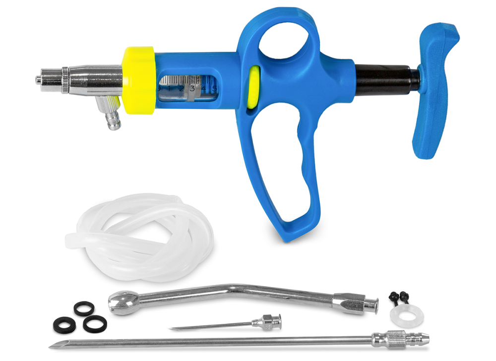 Handpistole zur Feindosierung von Flüssigkeiten in einem Bereich von 0,5 bis 5 ml mit ergonomischem Handgriff, Einstellrad und Luer-Lock-Anschluss