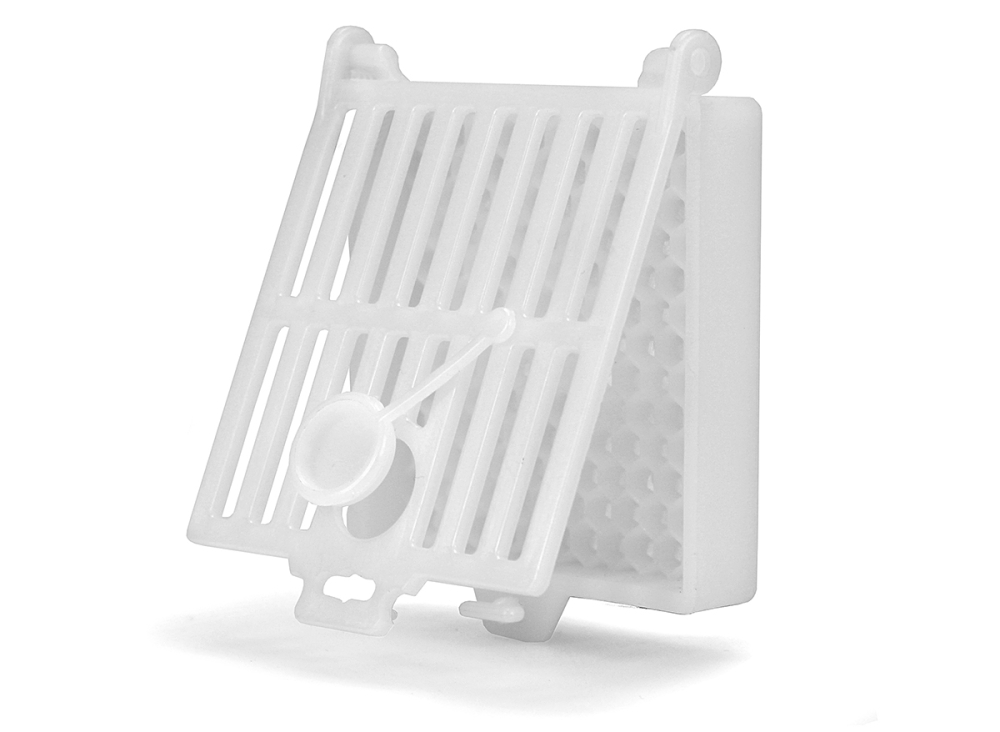 aus Kunststoff, zur Vorbereitung einer künstlichen Brutpause und als Königinnen- Zusetzkäfig, Größe ca. 7 x 8 cm, Breite 2 cm