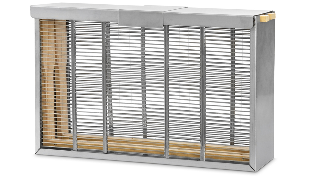 aus Edelstahl Material 1.4016, passend für 2 Rähmchen Normalmaß, Zander, Dadant US oder Mini Plus, mit geraden oder Hoffmann-Seiten, Außenmaß je nach Rähmchenmaß, Tiefe 105 mm