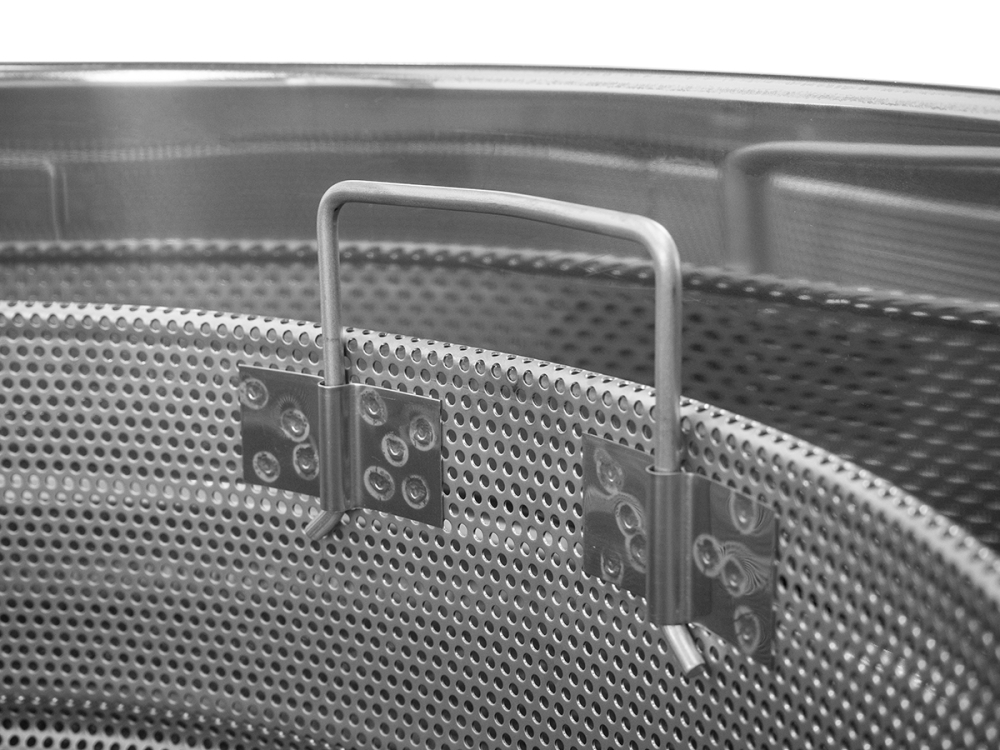 • Kessel und Trommel mit Siebgitteröffnungen von 3 mm Ø aus Edelstahl