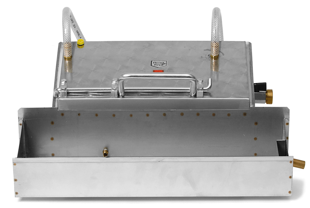 Wassergekühlte Mittelwand Gießanlage mit Silikonprägung, keine Lösmittel mehr erforderlich. Die Wasserkühlung erfolgt in oberer und unterer Platte durch Direktanschluss an eine Wasserleitung. Das Restwachs wird in einer Wanne aufgefangen. Mit Deckelgriff, Gehäuse aus Edelstahl. Wabenmaß 420 x 202 mm, Lieferung mit Reinigungspinsel und Anleitung, hergestellt in Österreich, Gewicht ca. 9 kg