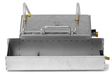 Wassergekühlte Mittelwand Gießanlage mit Silikonprägung, keine Lösmittel mehr erforderlich. Die Wasserkühlung erfolgt in oberer und unterer Platte durch Direktanschluss an eine Wasserleitung. Das Restwachs wird in einer Wanne aufgefangen. Mit Deckelgriff, Gehäuse aus Edelstahl. Wabenmaß 395 x 195 mm, Lieferung mit Reinigungspinsel und Anleitung, hergestellt in Österreich, Gewicht ca. 8,5 kg
