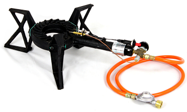 Stufenlos regelbarer Brenner aus Gusseisen, inkl. 1,5 m langem Schlauch und Druckminderer