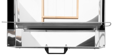 bestehend aus einem Edelstahl-Korpus mit Innenwanne und Trester-Lochblech, Edelstahl-Rahmen mit Doppelstegplatte sowie zwei Tragegriffen