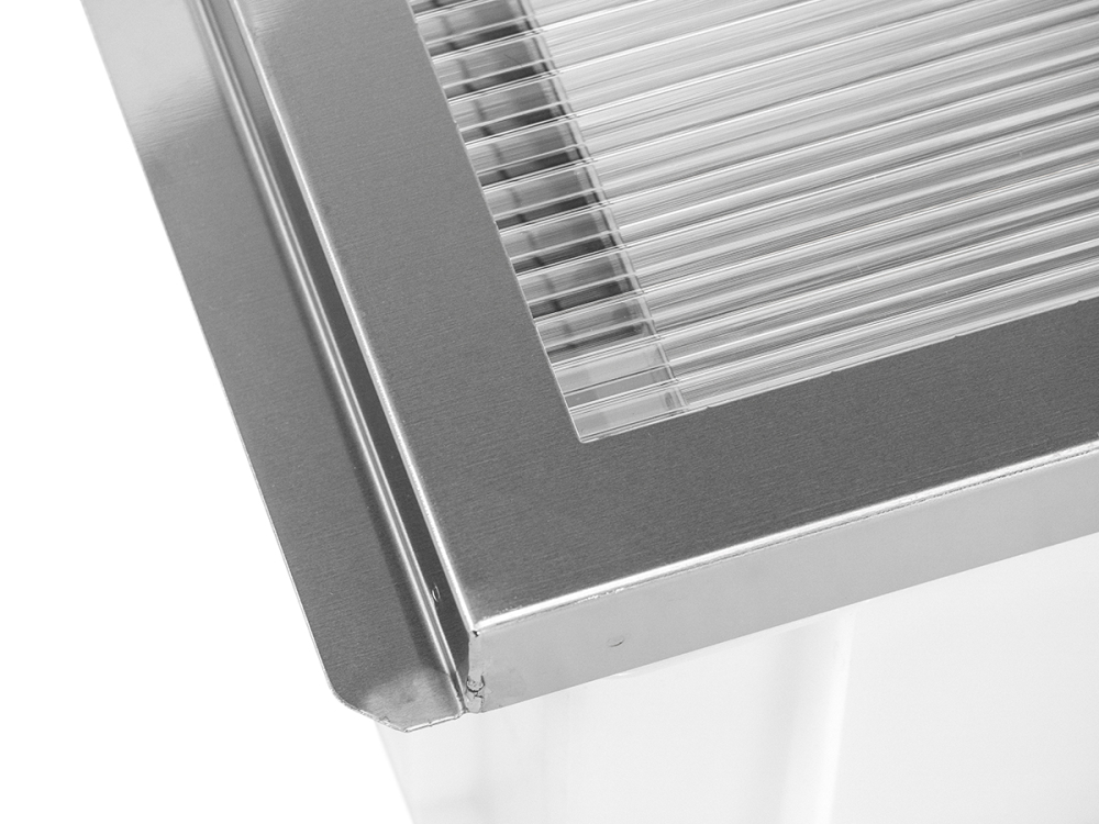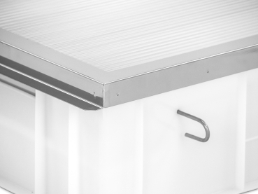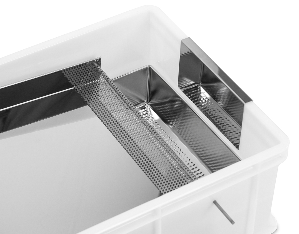bestehend aus einer Kunststoff-Wanne mit Edelstahl-Innenwanne und Trester-Lochblech und Edelstahl-Rahmen mit Doppelstegplatte