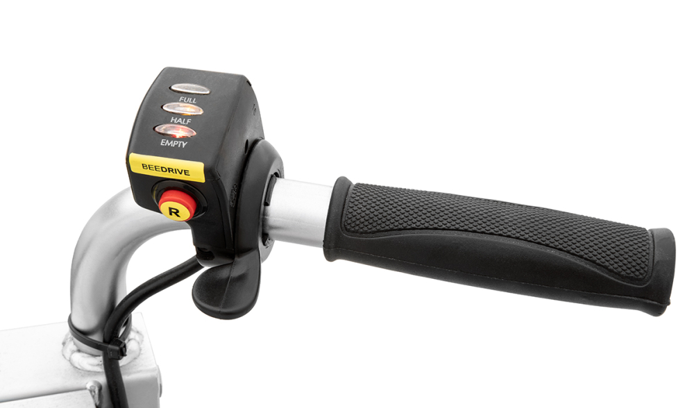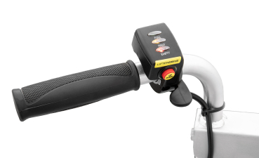 Vollmotorisierte Steuerung der Fortbewegung und der Hubhöhe mittels Schaltern und Hebeln an den Handgriffen