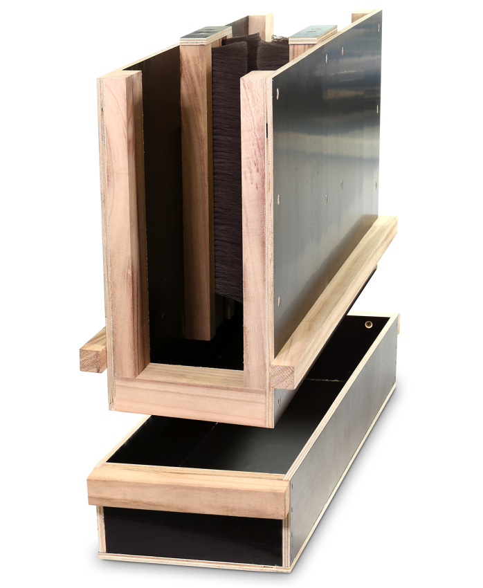 Abkehrvorrichtung aus Holz inkl. 4 Bienenbesen mit Roßhaarbürsten für die Honigernte sowie Ableger- oder Kunstschwarmbildung Maße: L 75 cm x B 23 cm x H 43 cm