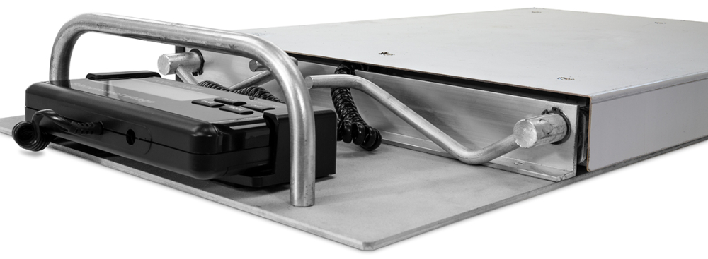 Edelstahl Multifunktionswaage zum Einsatz als Bienenstockwaage oder zum Wiegen von Zargen und Eimern. Die Lieferung erfolgt im Set mit einem Distanzrahmen aus Holz für den Einsatz als Stockwaage. Die Beute steht auf dem Distanzrahmen, zum Wiegen wird die Bienenstockwaage herunter geschoben. Mittels zwei Hebeln wird der Rahmen mit der Beute angehoben und das Gewicht erscheint auf dem LCD Display
