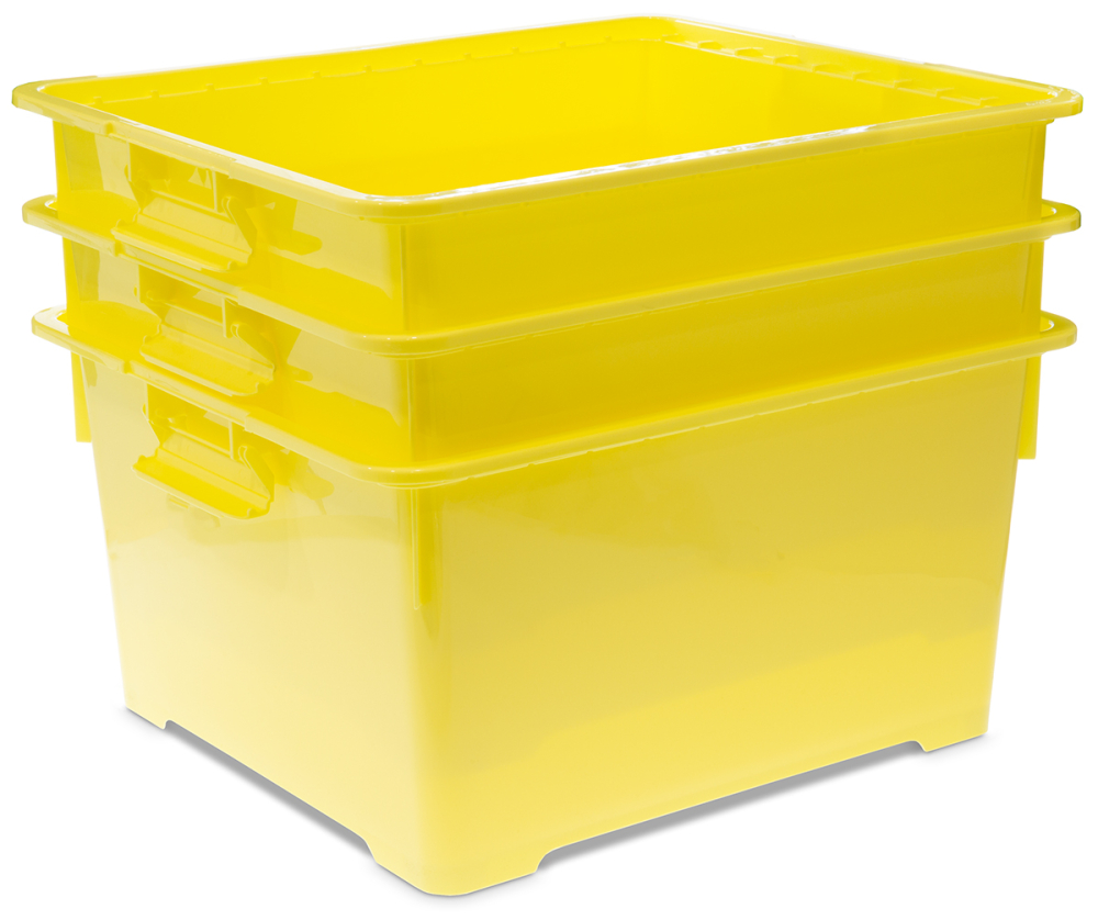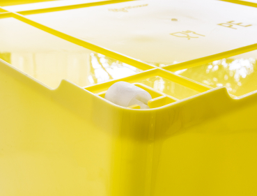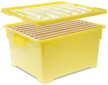 Passend für 10 Waben Normalmaß 394 x 223 mm oder 9 Waben Zander 477 x 220 mm. Ausgestattet mit zwei seitlichen Griffen und 4 unterseitig angebrachten Transportrollen, durch Vertiefungen im Deckel sowohl ineinander als auch aufeinander stapelbar