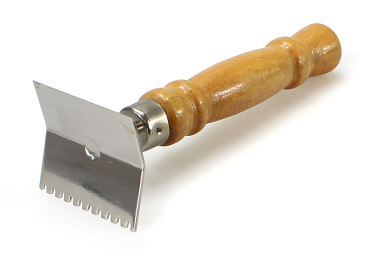 zum Reinigen von Metall-Absperrgittern, mit einer Zackenreihe für Gitterweiten von 4 mm und einer geraden Schabekante.