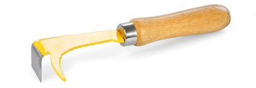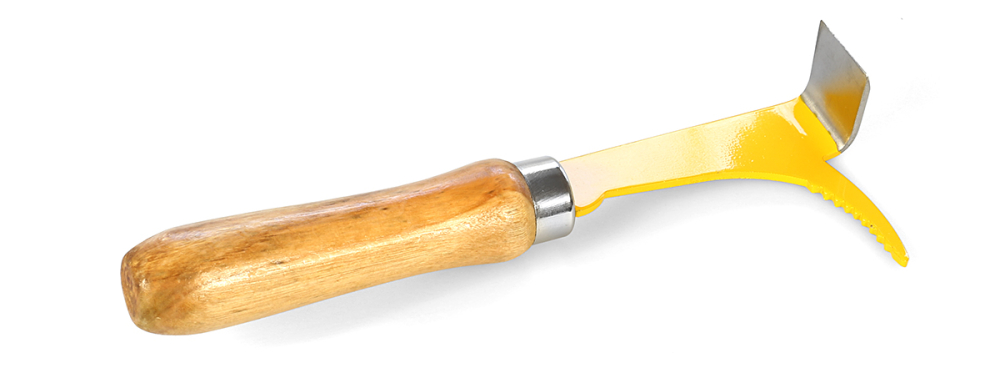 Stockmeißel und Wabenheber aus Federstahl mit Holzgriff in einem Stück, gelb lackiert, 19,5 cm lang