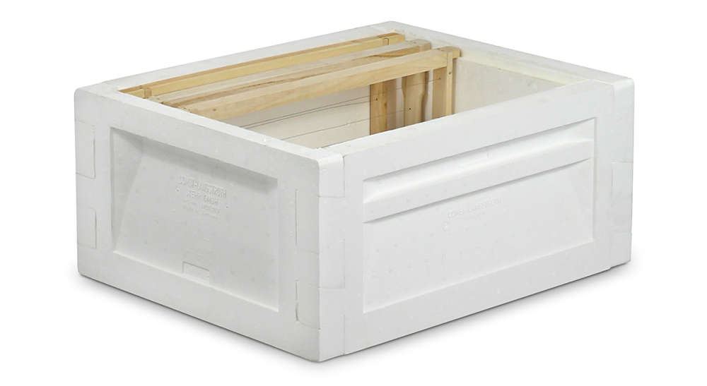 passend für 10 Rahmen Langstroth von 482 x 232 mm. Inklusive Auflageschienen. Außenmaß ca. 54 x 45 cm, Höhe ca. 24 cm