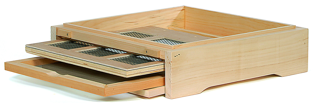 Je ein Edelstahl Lüftungsgitter im Holzrahmen und ein Bodenschieber als Einschubkassette, variabel von hinten oben oder unten einsetzbar