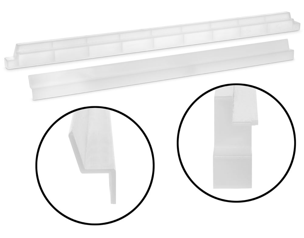 hergestellt aus lebensmittelechtem Kunststoff, passgenau für die neue Segeberger 12er Zarge. Der 4er Satz besteht aus zwei Winkel- und zwei Auflageschienen © EU Designschutz eingetragen beim EUIPO