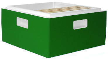 leicht bauchige Form mit feiner Mittelnaht, fest geschäumt und passend für 11 Rähmchen Normalmaß mit 223 mm Höhe