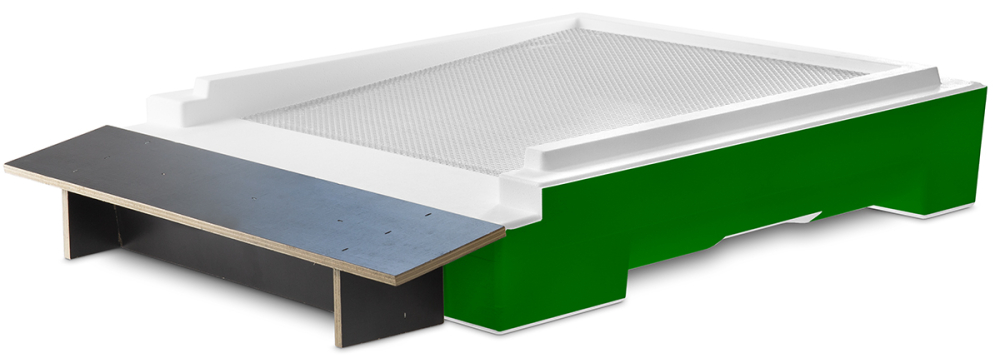 aus Holz, wird vor dem Flachboden platziert und ergibt so eine zusätzliche Anflugfläche von 10 cm Design registriert beim DPMA und gesetzlich geschützt
