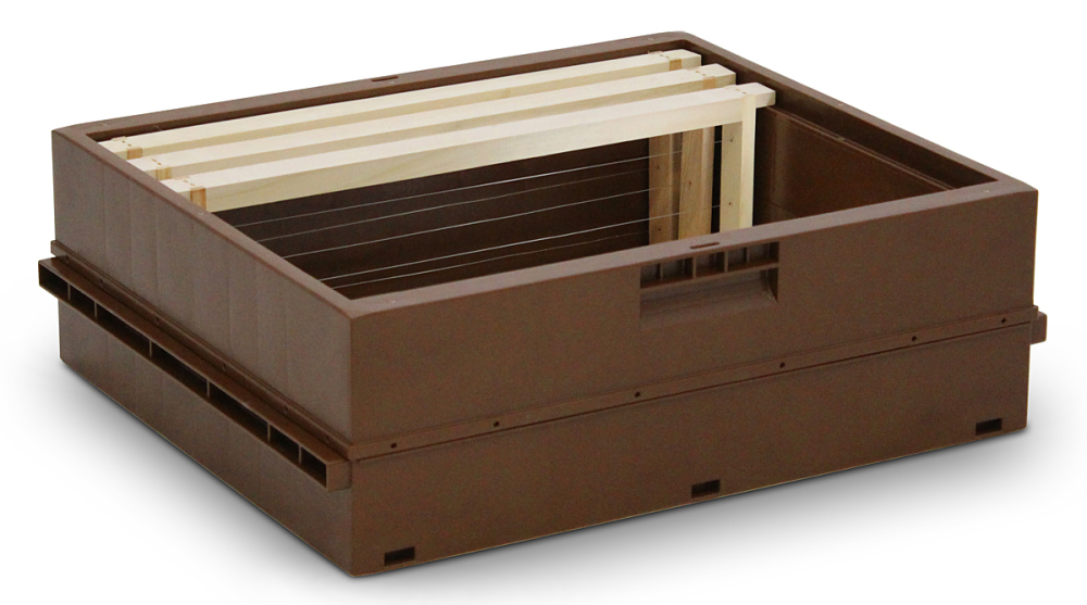 für 10 Rähmchen Dadant Blatt 470 x 159 mm Wandstärke 25 mm, Außenmaß 50 x 43 cm Höhe 16,5 cm, Gewicht ca. 2,4 kg