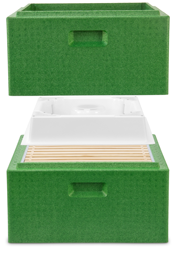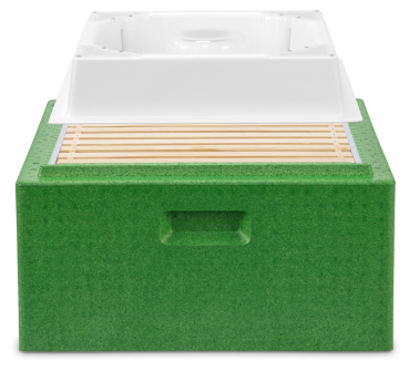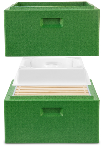 2-teilig, quadratischer Futtertrog zum Einsatz in einer Leerzarge. Ausgestattet mit einem Bienenaufstieg über einen zentralen Dom und zusätzlich mit 4 weiteren Eck-Aufstiegen ausgestattet mit Kletterlamellen. Alle Abdeckungen sind zum Reinigen abnehmbar Außenmaß ca. 415 x 415 x 85 mm